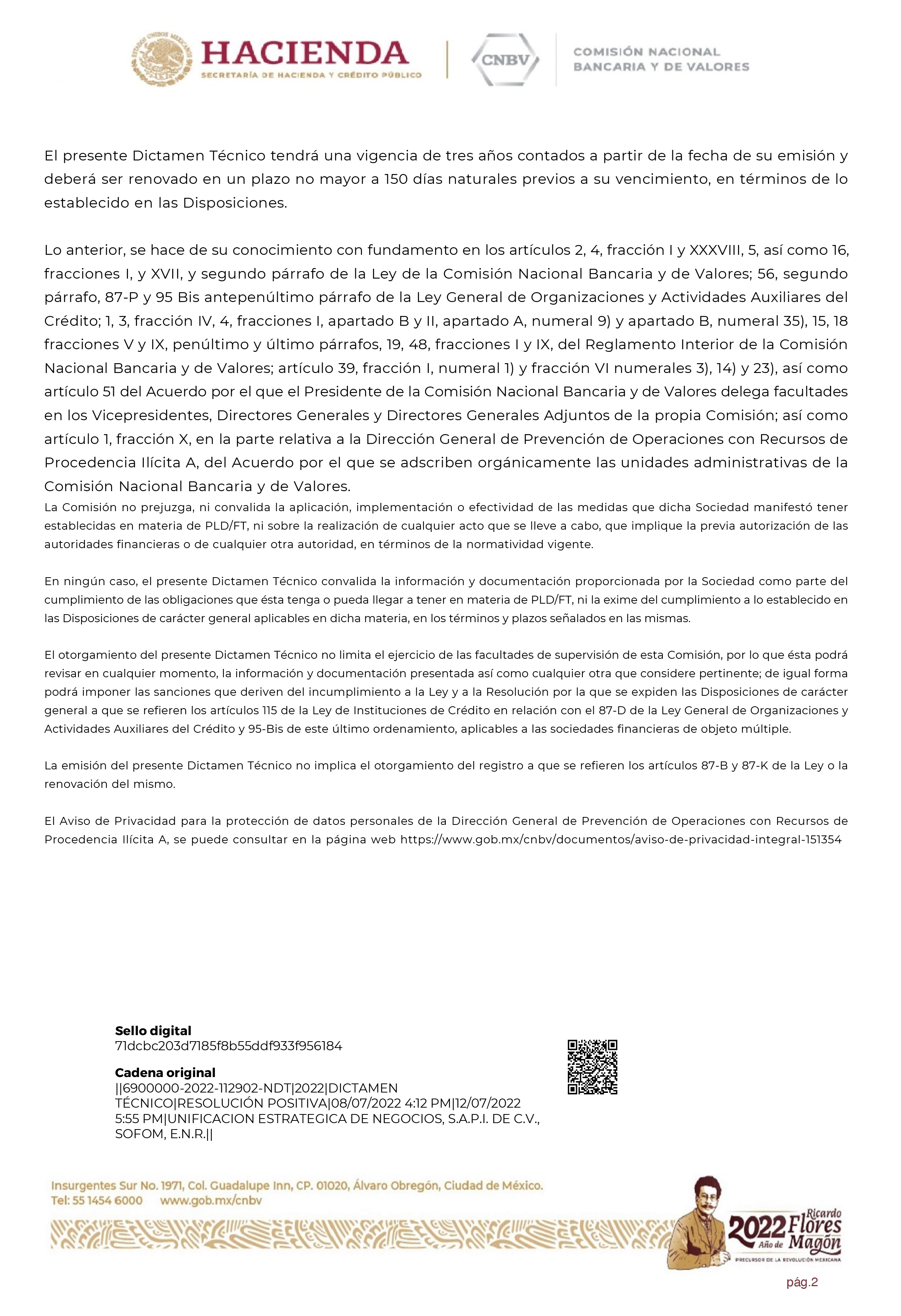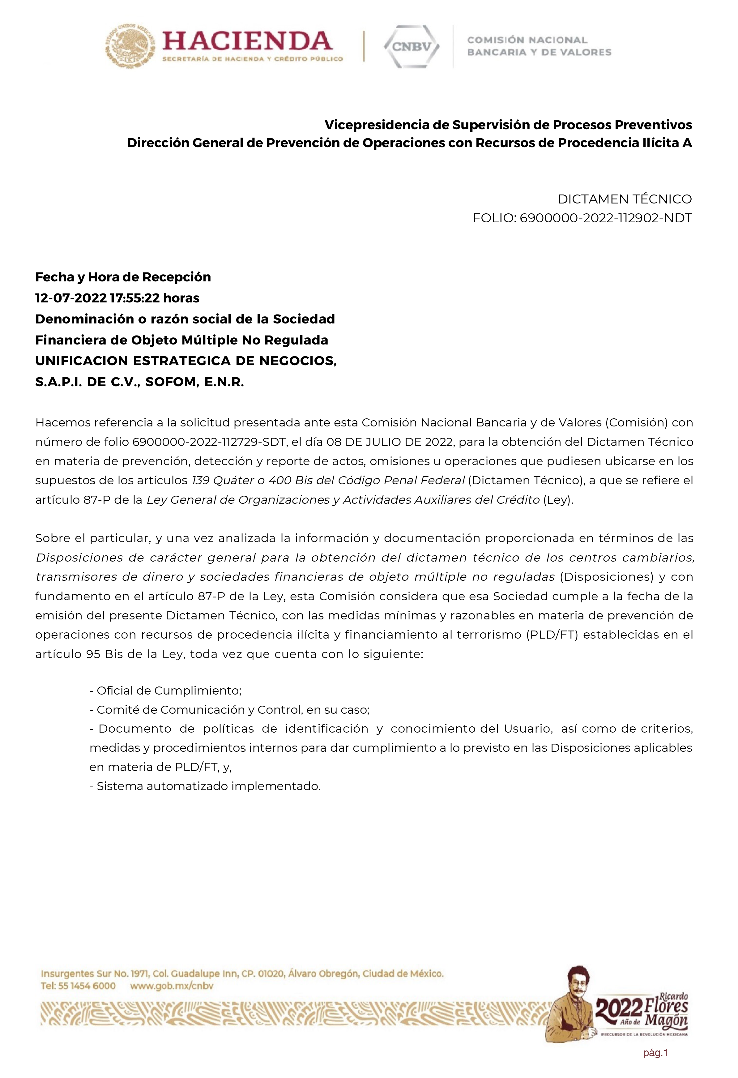 Empresa Colaboradora:Unificación Estratégica de Negocios, S.A.P.I. de C.V., SOFOM, E.N.R